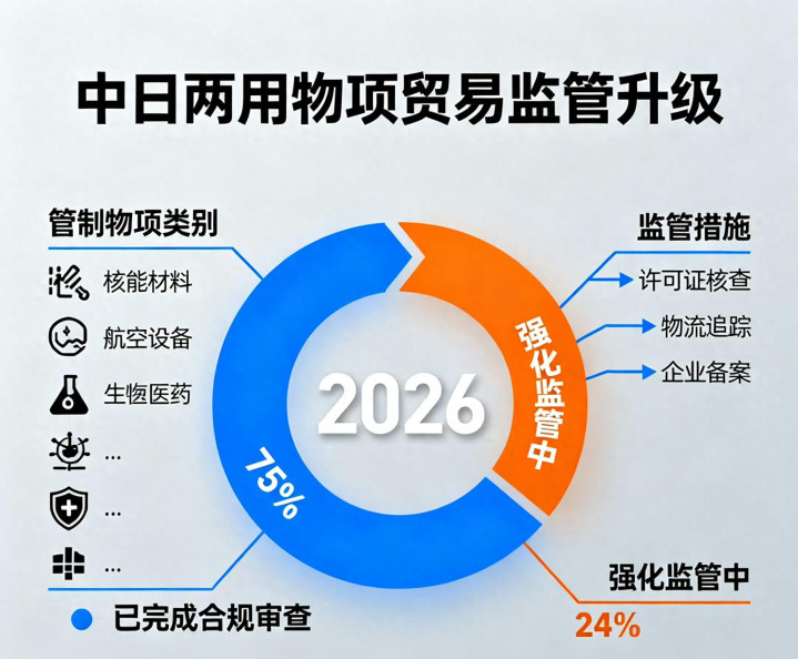 2026年1月6日,中国商务部发布公告,依据国内法,禁止所有两用物项对日本军事用户及相关用途的出口。